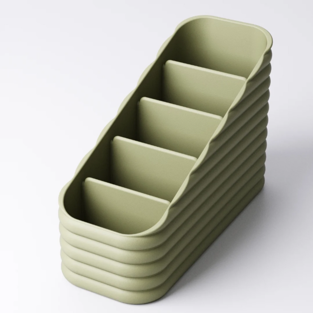 Because we 3D print every caddy to order, you can pick the perfect colour to match your room. You can also choose between two lovely tactile designs: a Vertical Narrow-Ribbed texture (as shown in the photos) for a delicate, modern feel, or a Horizontal Wide-Fluted design for a bolder, stacked look. It's such a simple way to make your space feel tidier and more *you*.